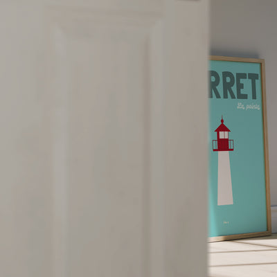 FERRET La Pointe est une affiche illustrée inspirée par l’extrémité du Cap Ferret, là où le bassin et l’océan se rencontrent. Dominée par la silhouette iconique du phare, cette composition graphique évoque la lumière, les repères maritimes et l’élégance intemporelle de ce lieu emblématique. Une illustration murale décorative pensée comme un hommage à l’esprit marin, apportant clarté, caractère et horizon à l’intérieur.