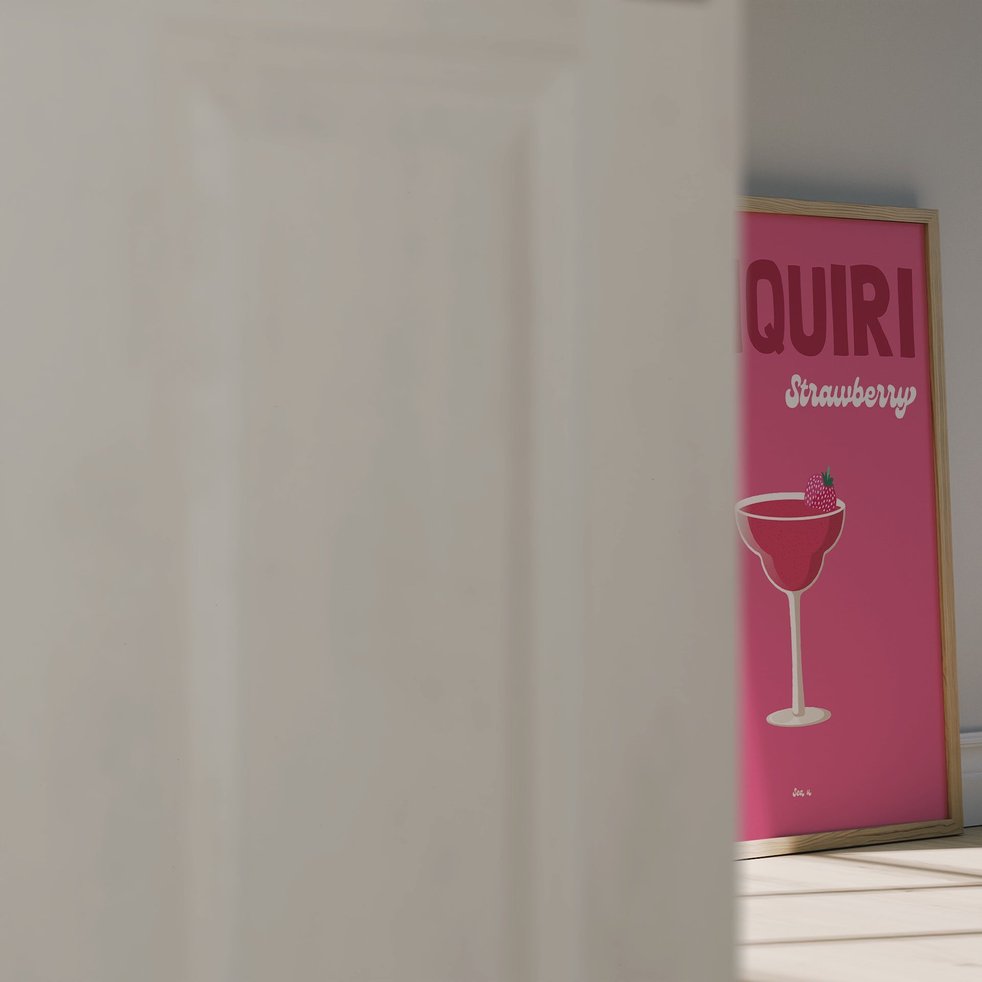 DAIQUIRI Strawberry est une affiche inspirée par les cocktails fruités et l’esprit estival. Une composition graphique fraîche et gourmande, évoquant douceur, soleil et plaisir.