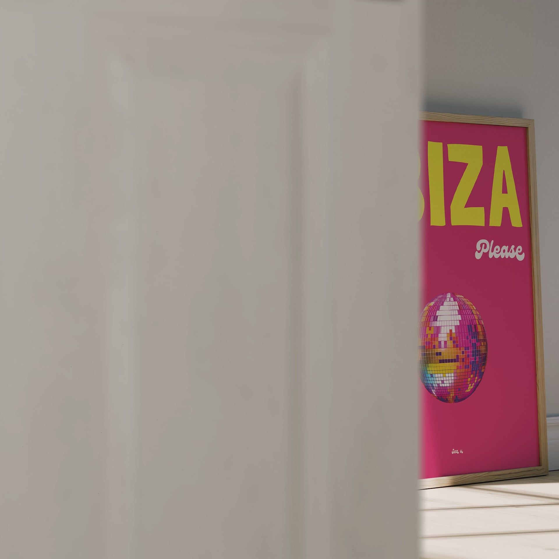 IBIZA Please est une affiche inspirée par l’énergie libre et solaire de l’île d’Ibiza, entre fêtes mythiques, lumière méditerranéenne et esprit hédoniste.
