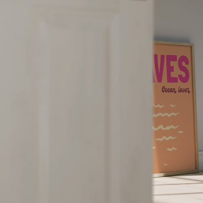 WAVES Ocean Lovers est une affiche inspirée par l’amour de l’océan et le mouvement infini des vagues. Une composition graphique fluide et apaisante, qui évoque la connexion à la mer et à la liberté avec peps.